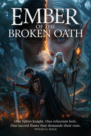 The peace that saved their world is dying—and it wants a heart in exchange.Once, Sir Caelan Morren was a hero of the Radiant Crown. Now he kneels in the ashes of his childhood village, branded a traitor for a massacre he tried—and failed—to stop. Exiled and haunted by the faces of his slaughtered kin, he has sworn one last oath: no more innocent blood.Far within the Elven Woodland, Lysandril Naerith is being hunted by her own. As the chosen Heir of Lyrinthar, she is bound by prophecy to ascend as the next Keeper of the Sacred Flame—the mystical fire that has preserved human-elf peace for two centuries. But Lysandril uncovers a forbidden truth: the flame is fading, poisoned by hidden treacheries, and her “ascension” is a sacrifice disguised as destiny.When a failing omen drives Caelan into the cursed forest and Lysandril into his path, their uneasy alliance may be all that stands between two nations and annihilation. Together they must cross haunted groves, outwit vengeful spirits, and unravel a conspiracy rooted in the very oath that bound their peoples.But at the heart of the woodland, the Sacred Flame of Lyrinthar awaits—and it demands not blood of enemies, but love freely given.As war drums thunder beyond the trees and forbidden feelings ignite between them, Caelan and Lysandril must decide:Whose heart will burn to keep the world from burning?Perfect for fans of character-driven epic fantasy, star-crossed allies, and magic that always exacts a price.